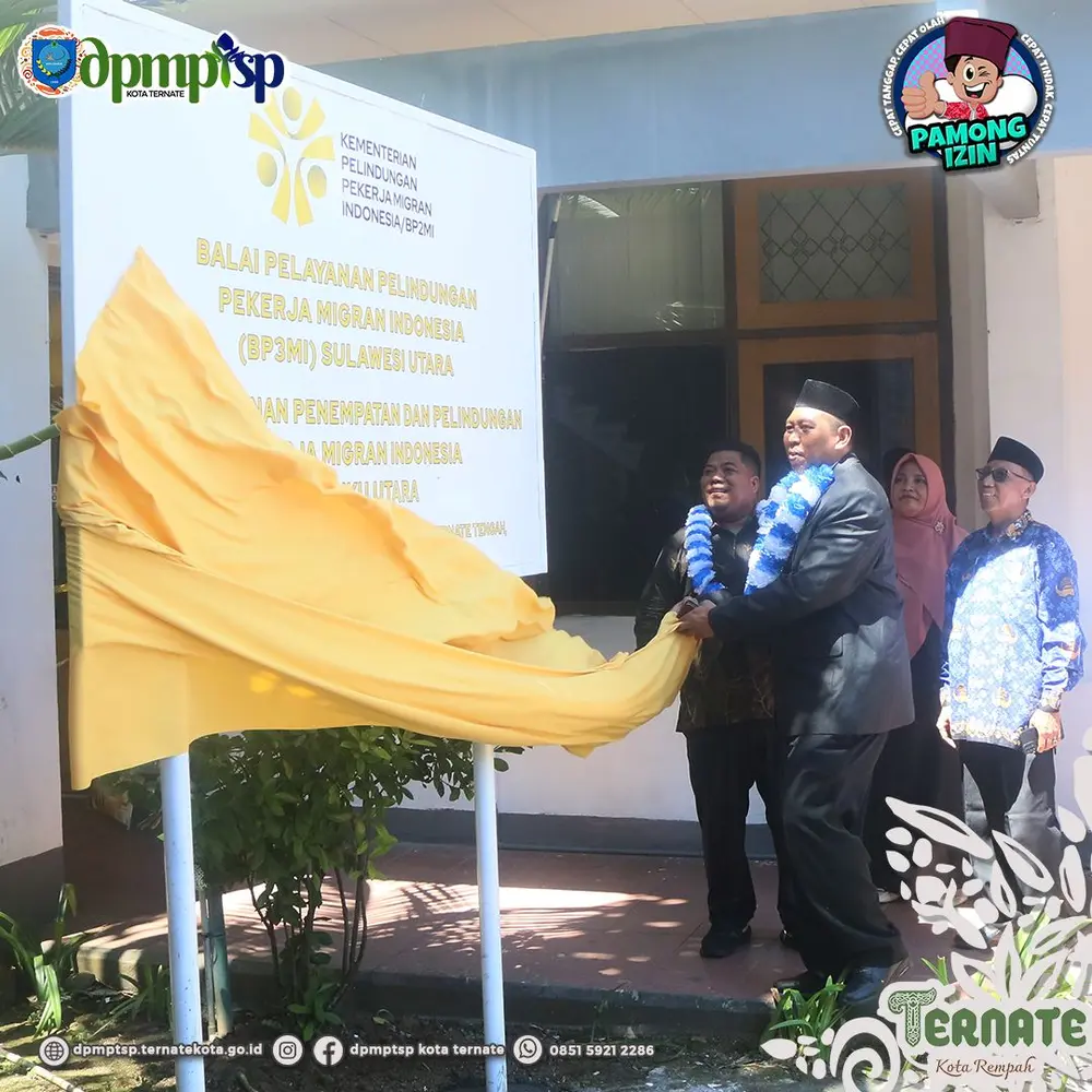 Kementerian Perlindungan Pekerja Migran Indonesia / Badan Perlindungan Pekerja Migran Indonesia (BP2MI) secara resmi membuka loket pelayanan Penenempatan dan Perlindungan Pekerja Migran Indonesia Maluku Utara di Kantor Dinas Penanaman Modal dan Pelayanan Terpadu Satu Pintu Kota Ternate. Acara launching sendiri dilaksanakan pada rangakaian upacara Hari Ulang Tahu Pemerintah Kota Ternate ke 27 di Halaman Kantor Walikota. Selanjutnya peresmian Loket Layanan Penempatan dan Perlindungan Pekerja Migran dilaksanakan di Kantor DPMPTSP Kota Ternate dan dihadiri oleh Kepala Dinas Tenaga Kerja dan Transmigrasi Maluku Utara Dr. Marwan Polisiri dan didampingi Kepala BP3MI wilayah Sulut, Gorontalo, Maluku dan Maluku Utara M. Syachrul Afriyadi, S.Kom, M.A.P, Kepala DPMPTSP Kota Ternate Drs. Bahtiar Teng, beserta sekretaris dan jajaran Pejabat Struktural dilingkup DPMPTSP Kota Ternate.