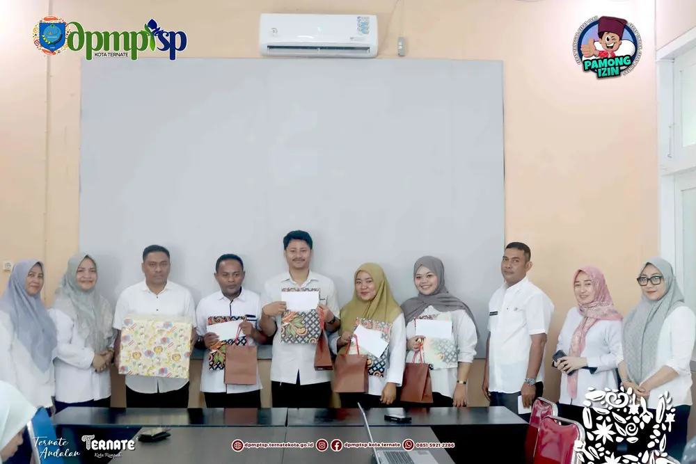 Dinas Penanaman Modal dan Pelayanan Terpadu Satu Pintu Kota Ternate memberikan penghargaan (reward) kepada Pegawai Pemerintah dengan Perjanjian Kinerja (PPPK) Paruh Waktu dilingkup DPMPTSP Kota Ternate Tahun 2025. Pemberian Reward ini diserahkan secara langsung oleh Sekretaris DPMPTSP Kota Ternate Hj. Hartati Umaternate, SH, M.Si, dan didampingi oleh para Kepala Bidang dan Kasubag Umum dan Kepegawaian. Reward ini diberikan atas kinerja dari para PPPK Paruh waktu yang terus berdedikasi memberikan yang terbaik bagi DPMPTSP Kota Ternate.